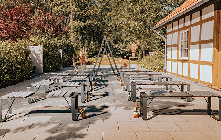 Unser Eventgarten bietet Platz für Eure Freie Trauung, einen Empfang oder eine Bühne für DJ, Band & Tanzfläche.