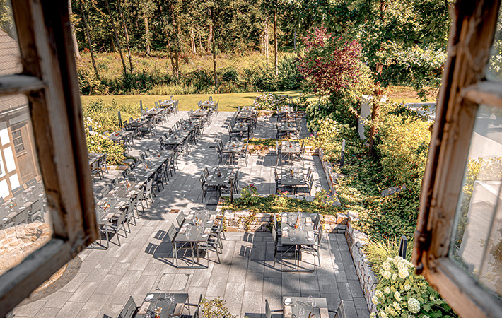 Bei Vogelgezwitscher entspannen und genießen: Der großzügige Sonnengarten direkt in der Natur des Teutoburger Waldes lädt zum Verweilen, Entspannen und Genießen ein.